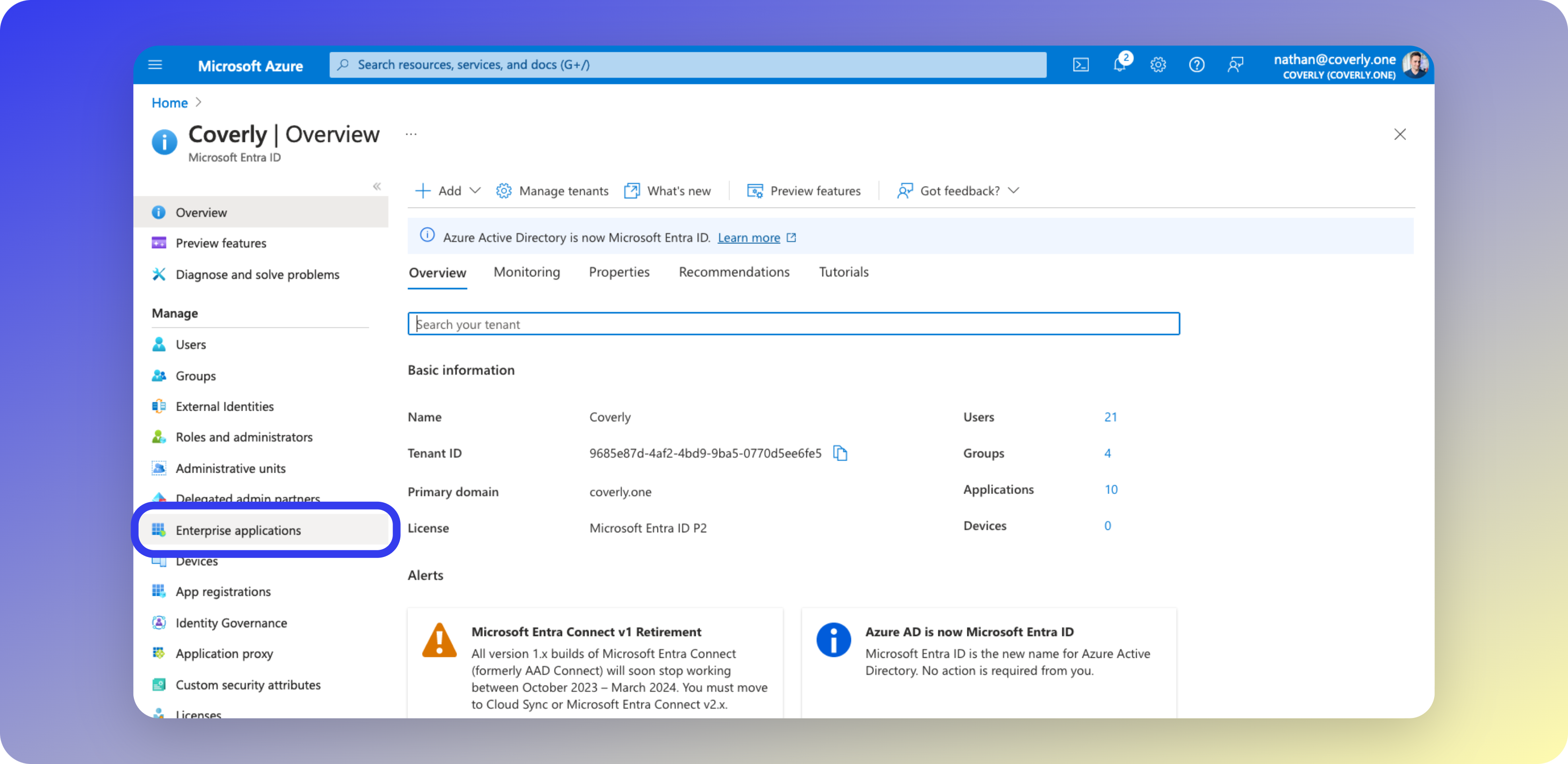 Return to the main Entra ID dashboard and select Enterprise applications.