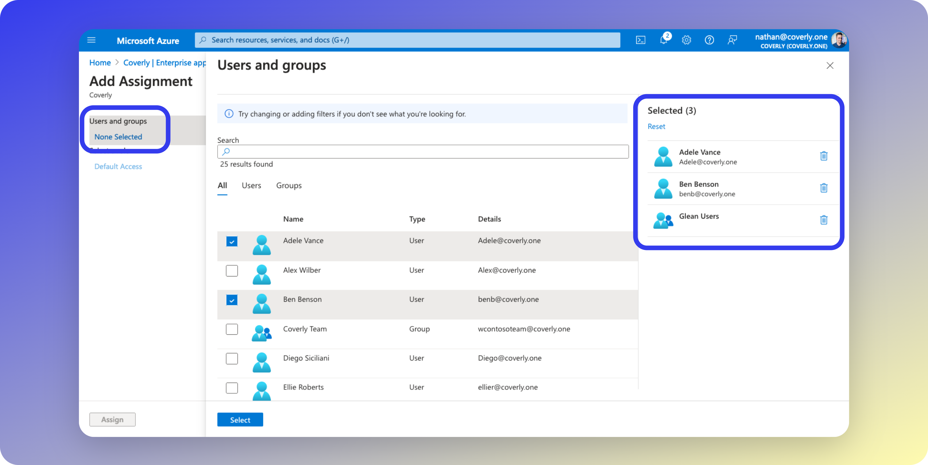 Select the group(s) and/or individual users that you wish to restrict Glean access to, and then click Assign.
