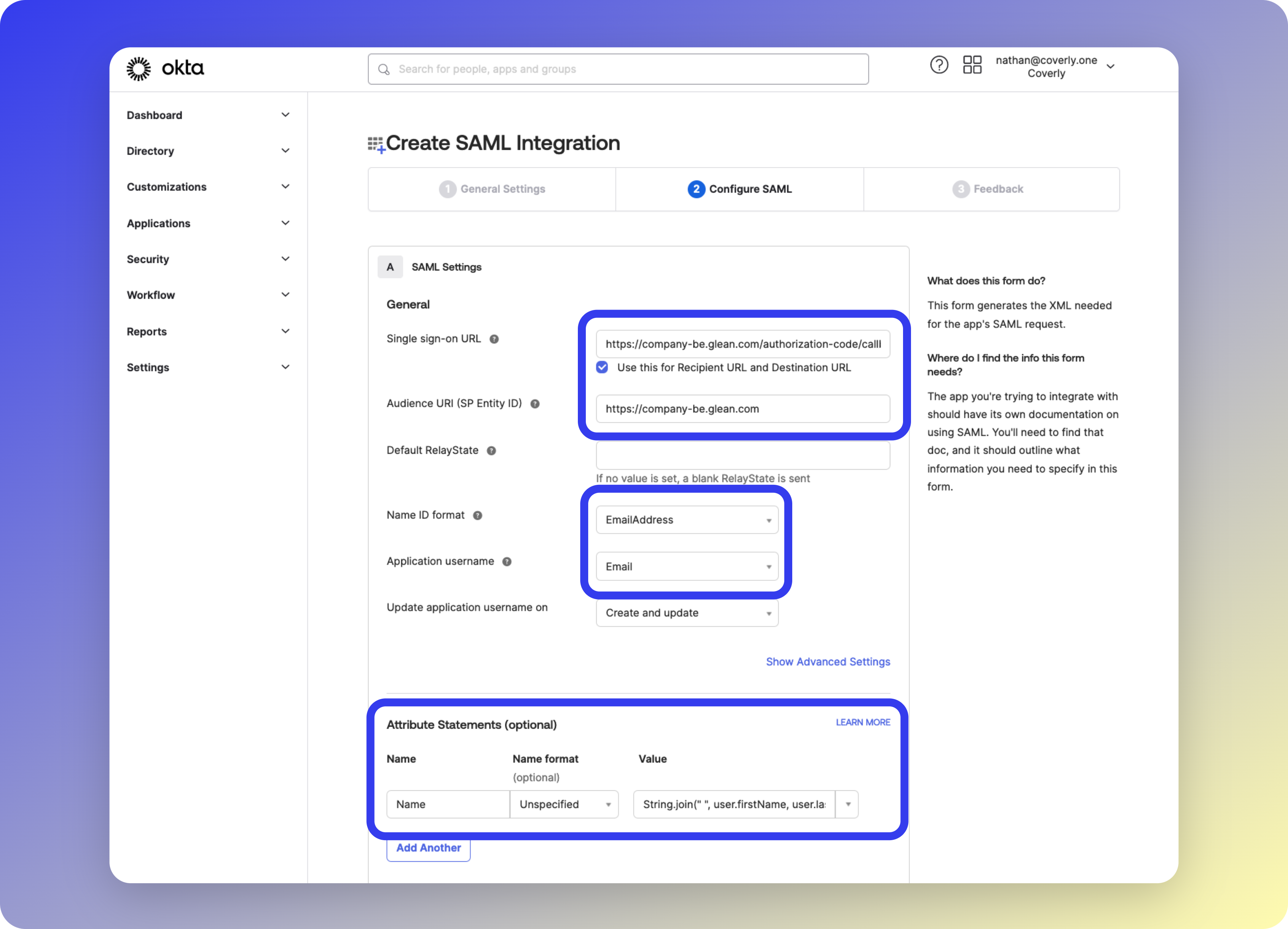 Glean SAML Configuration