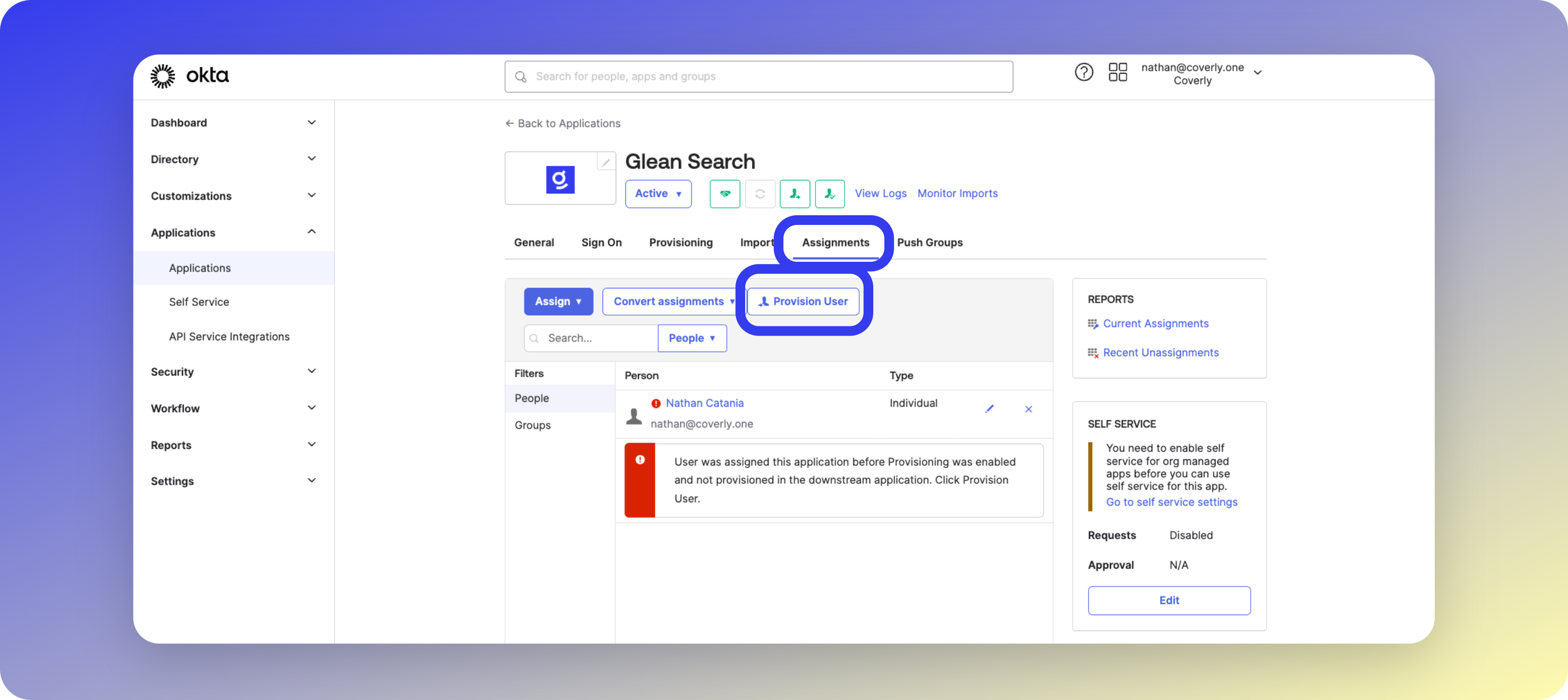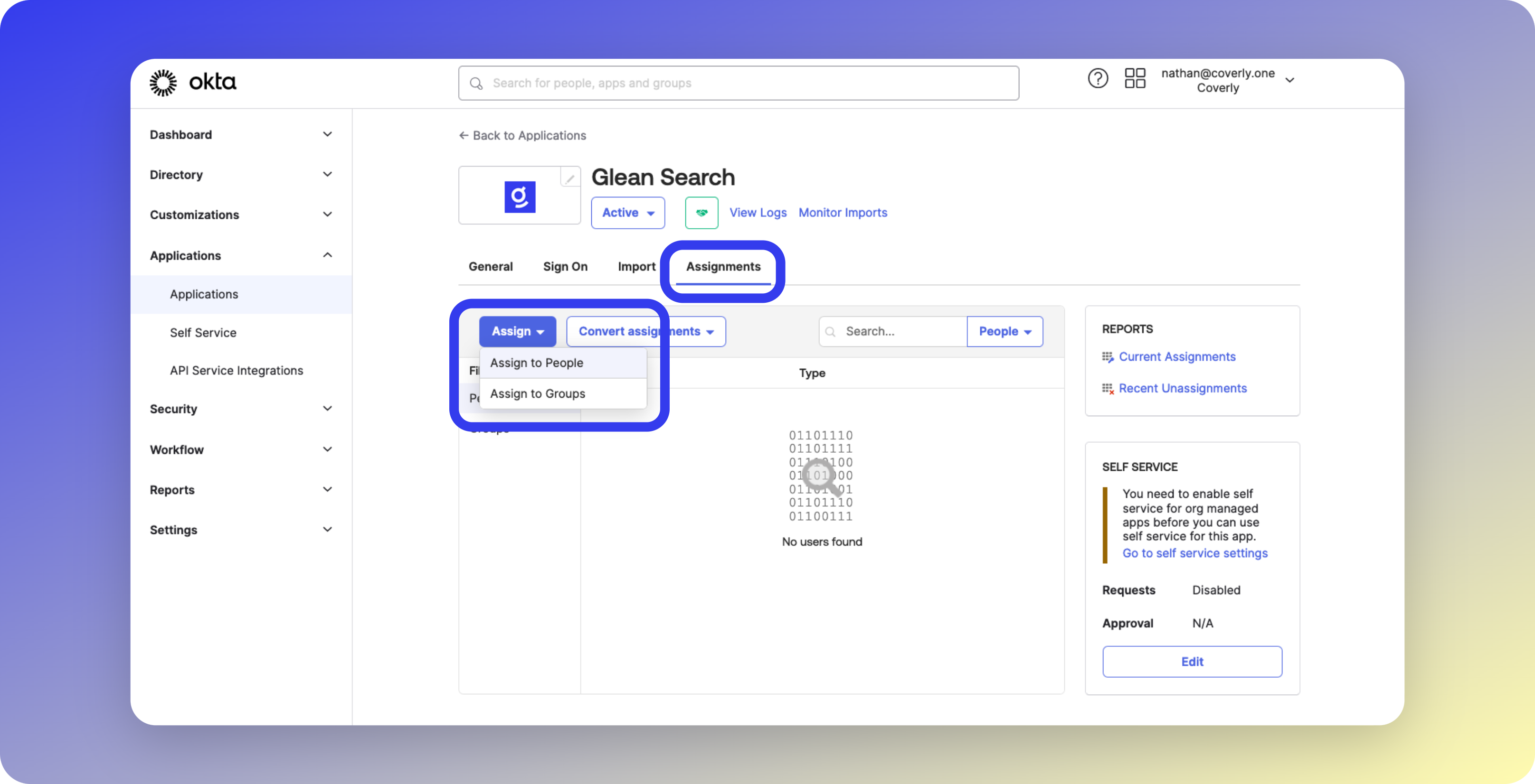 In the Glean Search Okta app, click the Assignments tab.