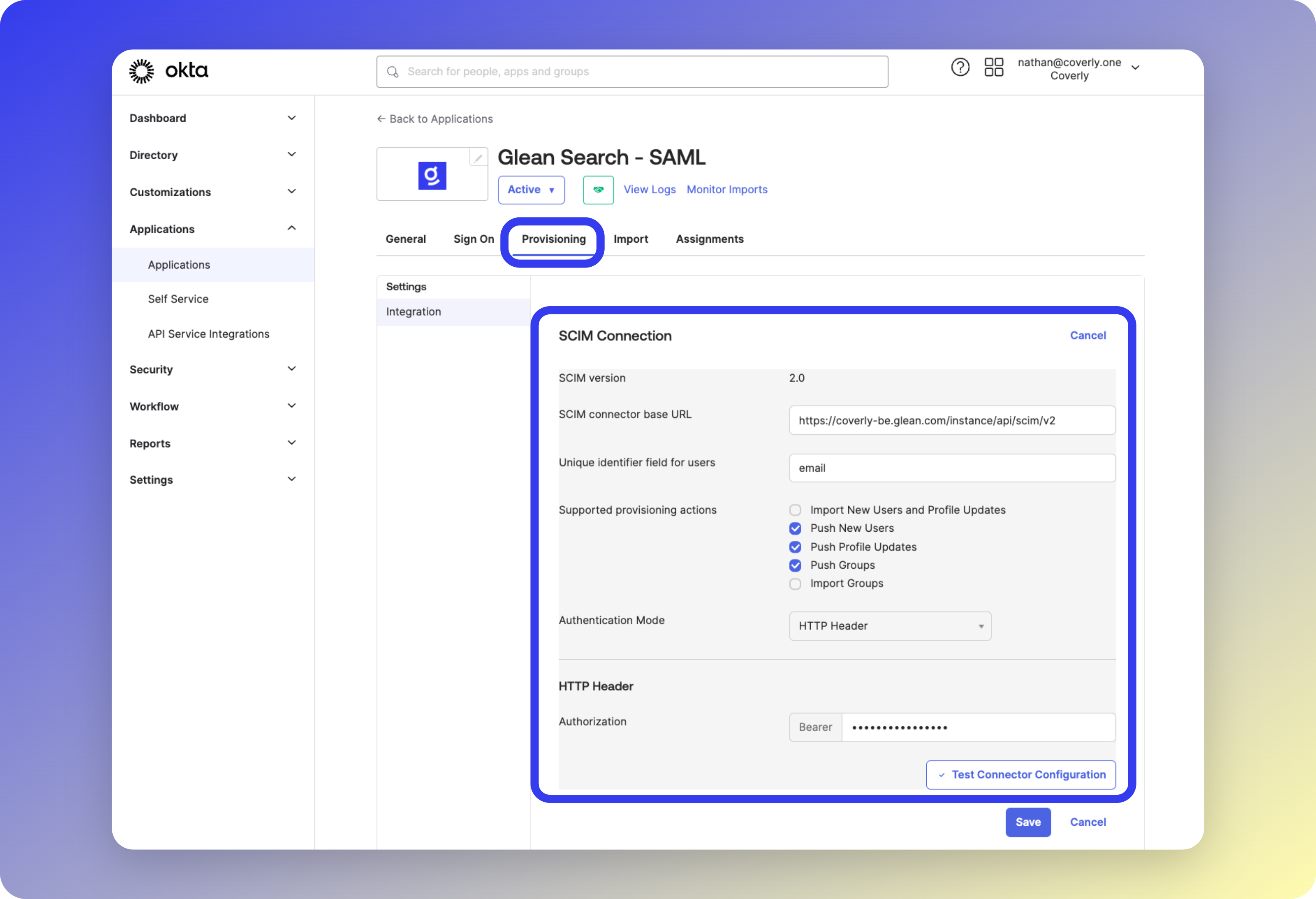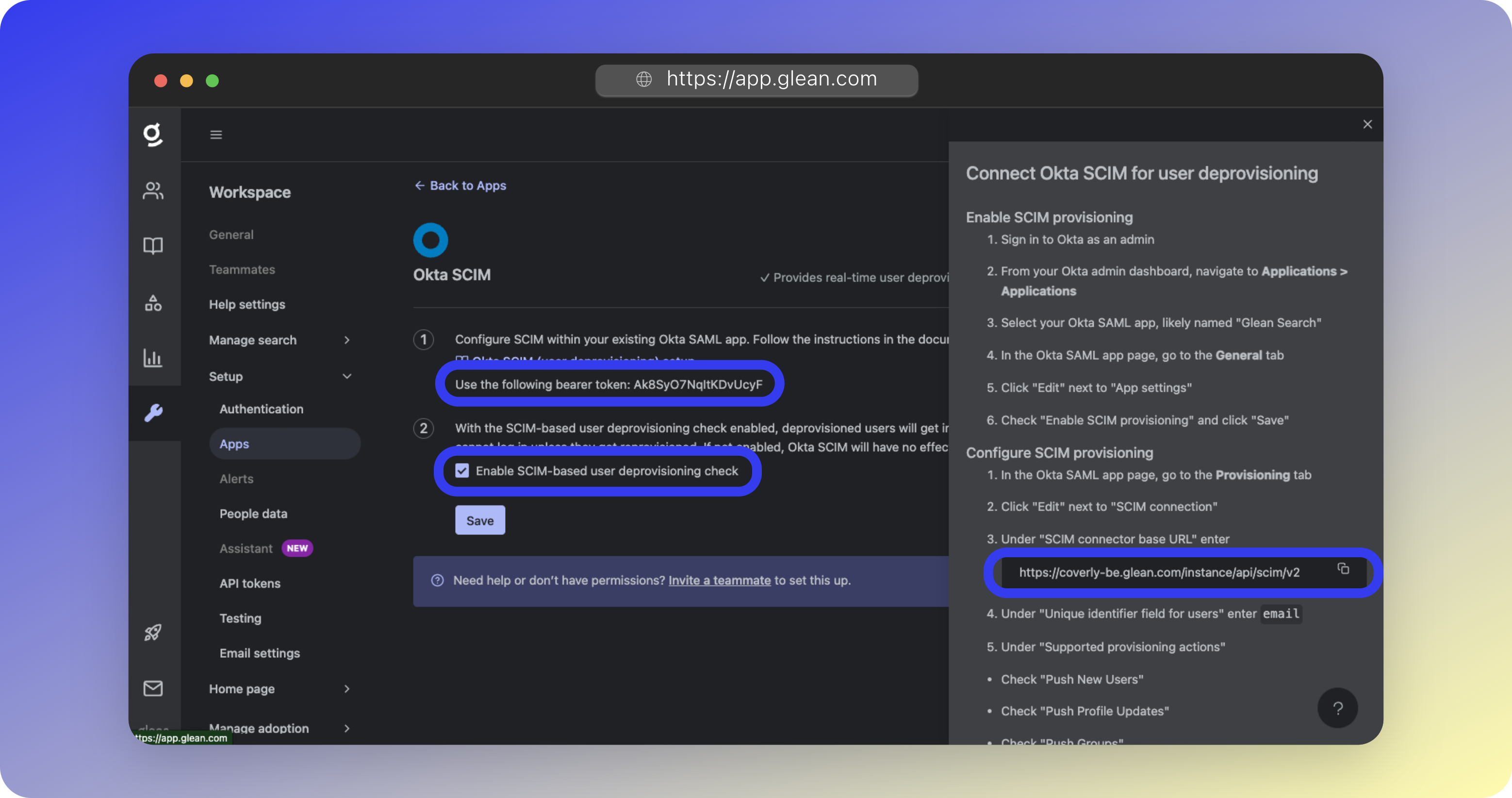 - An incorrectly copied Bearer Token or SCIM URL from the Glean UI into Okta.
