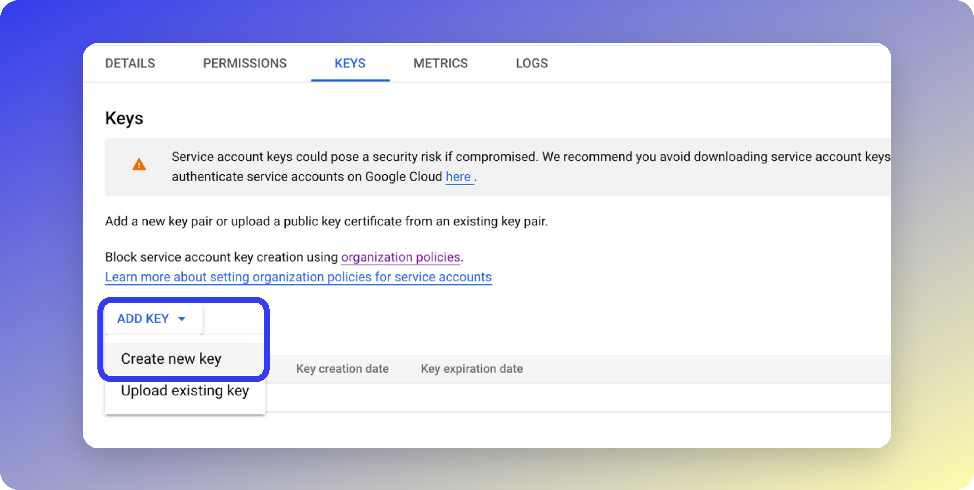 Download the key to your machine and share it with Glean using a secure communication channel.