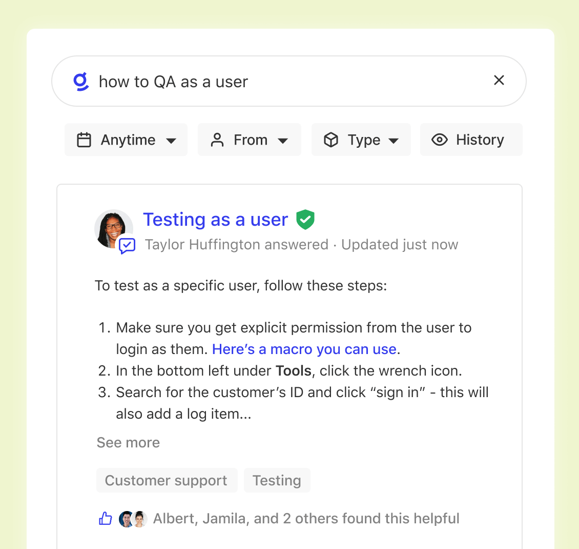 Quickly find answers to frequently asked questions. No more copying / pasting or rewriting the same answers for everyone.