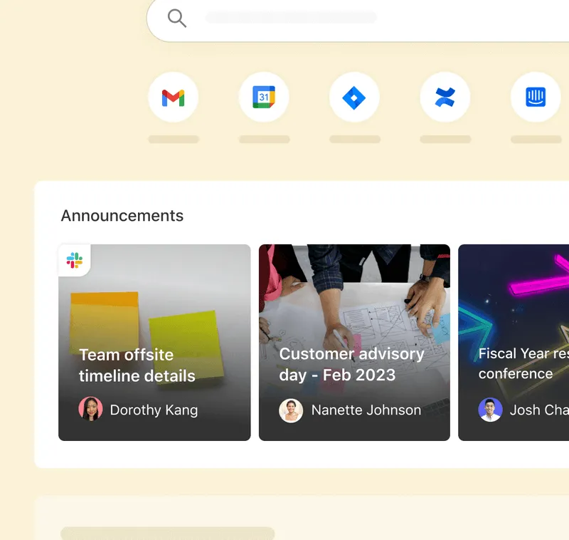 Share and discover important news. Streamline communication and cut through the noise of other communication platforms. The announcements carousel appears at the top of the Glean home page, so nobody misses important company news.
