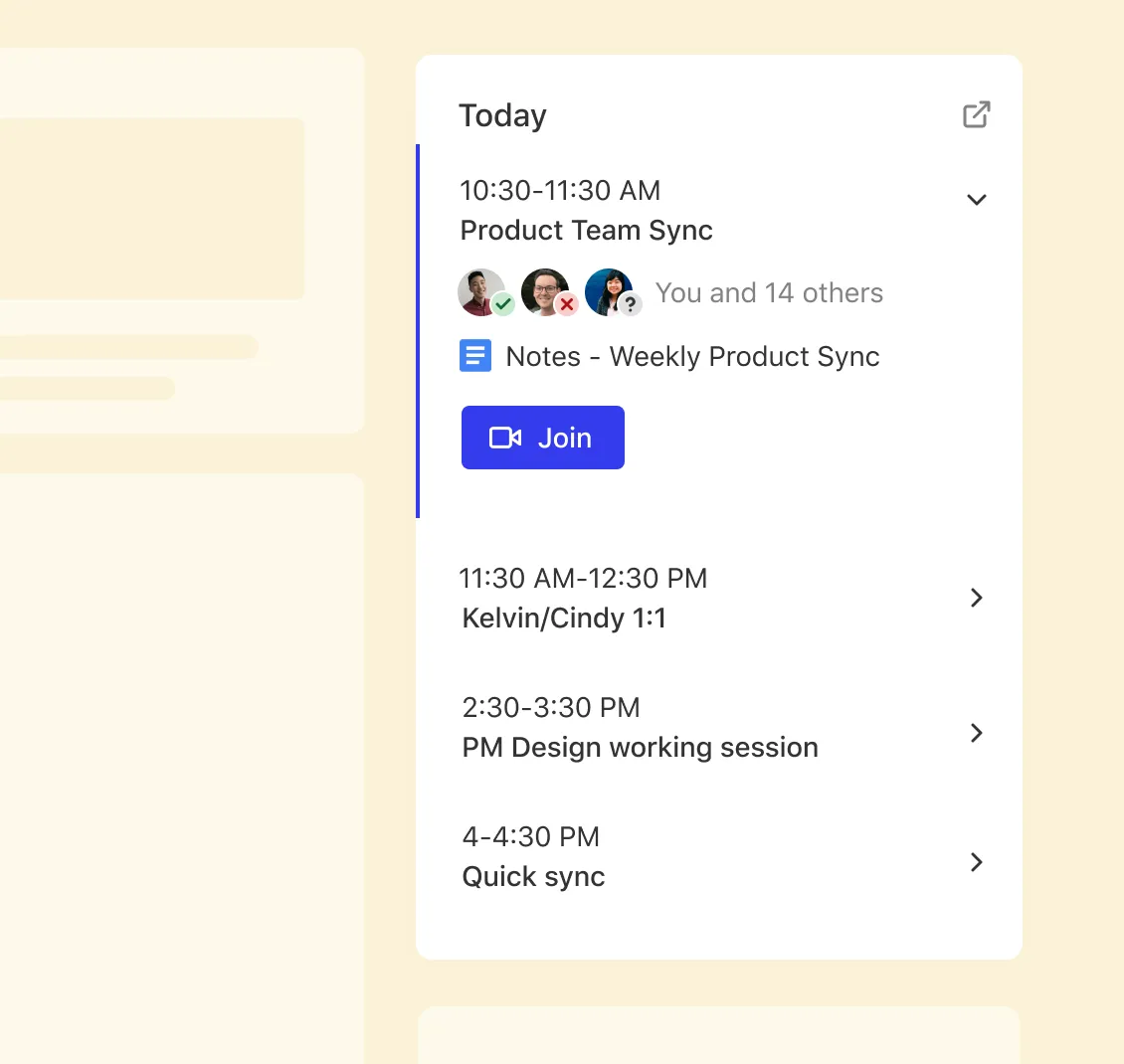 Upcoming events from a user's calendar are placed front and center on their home page, with easy access to video conferencing details; allowing your employees to stay on top of their day.